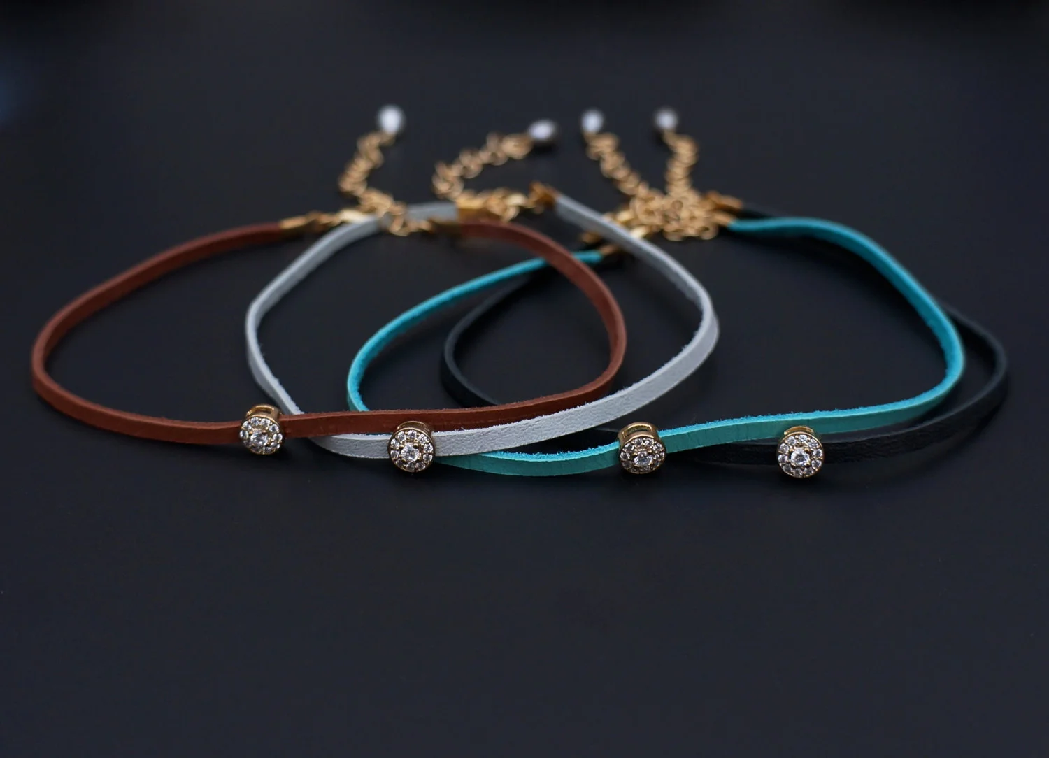 -your choice of soft, genuine, hand-dyed leather (black, brown, turquoise, and white) *see additional photos for options