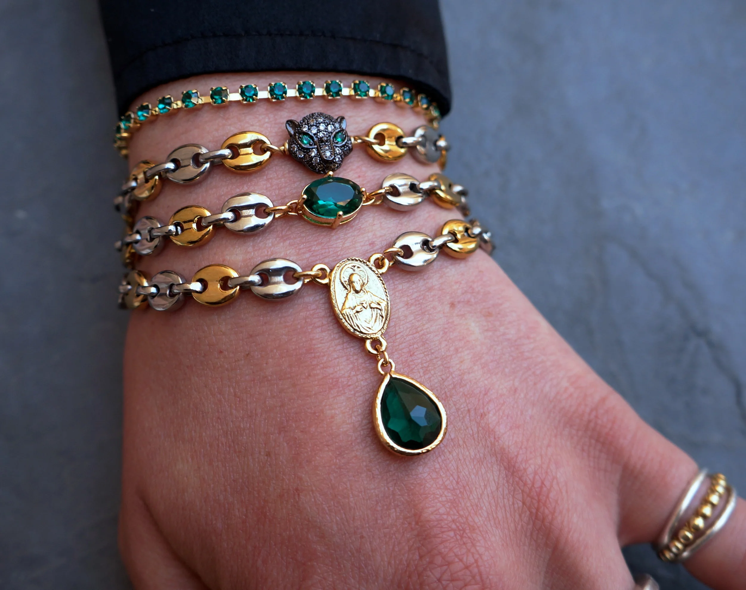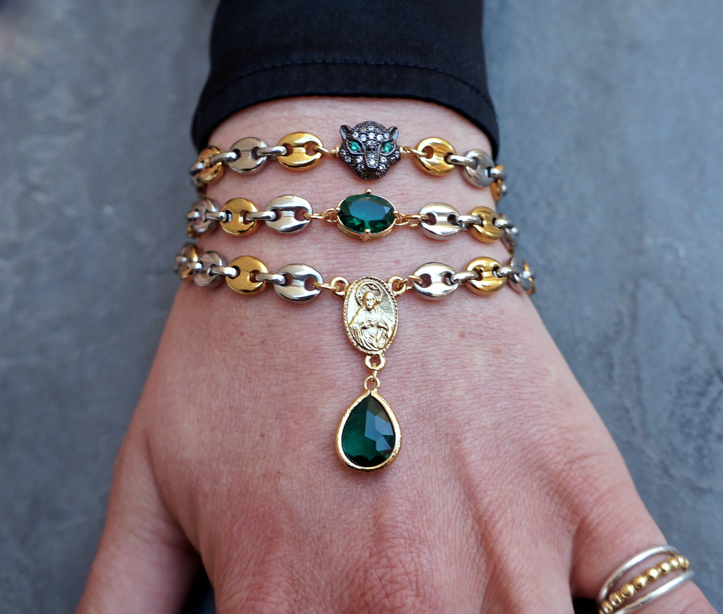 - a glass drop of your choice: emerald, aquamarine, amethyst, or onyx