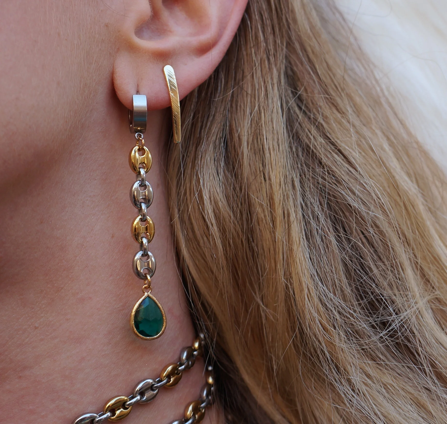 Mixed Link Emerald Earrings