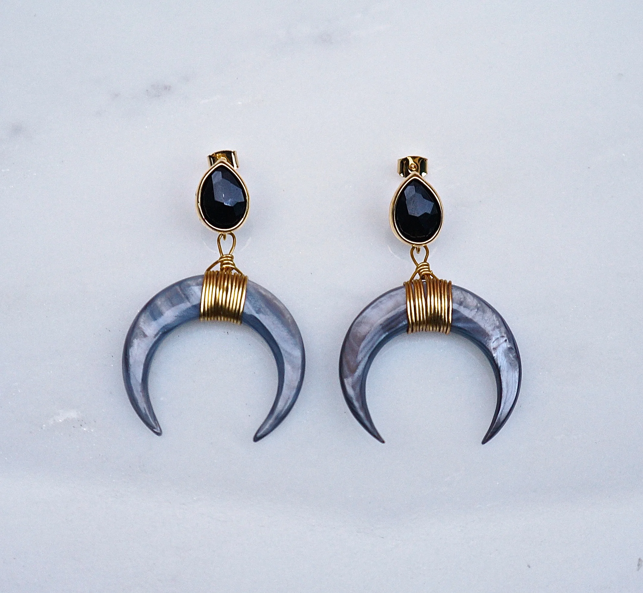 Shell Horn x Onyx Earrings