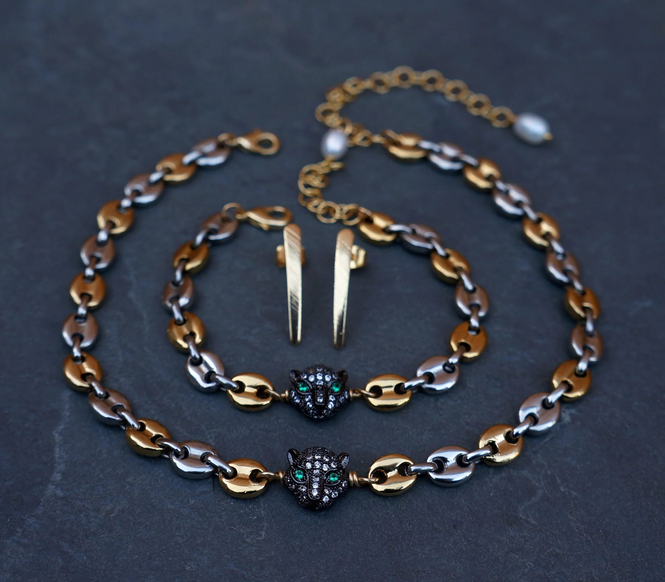 The earrings are reminiscent of the necklace the black panther worse. They resemble claws.