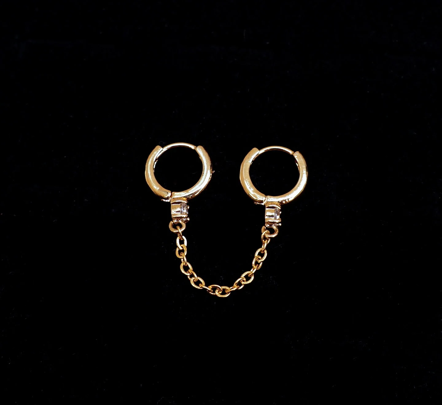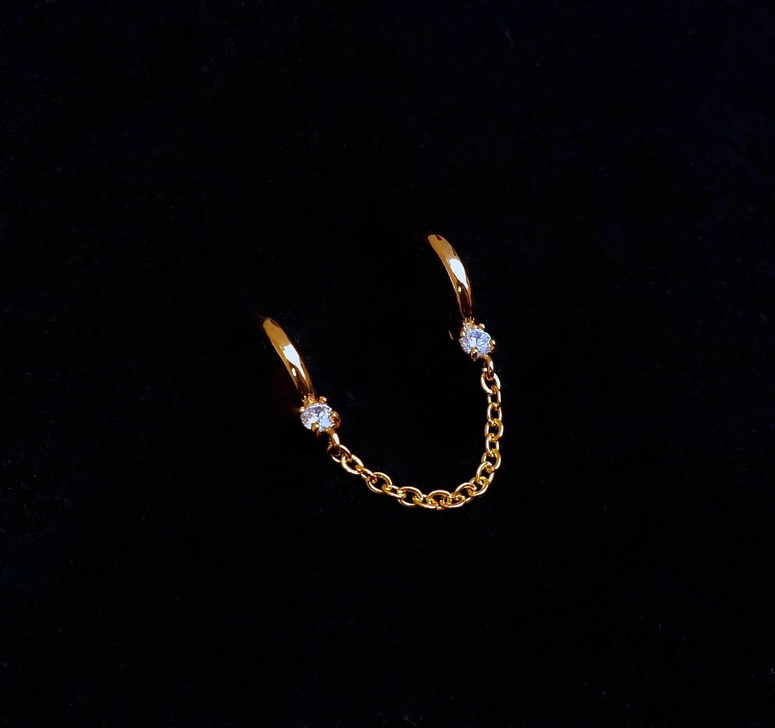 featuring 2 small 12mm gold hoops with tiny cz diamond. Attach with a delicate cable chain