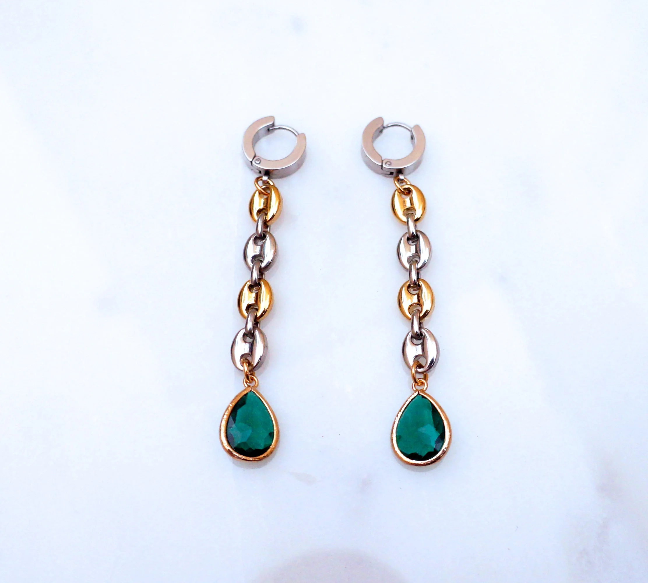 Mixed Link Emerald Earrings