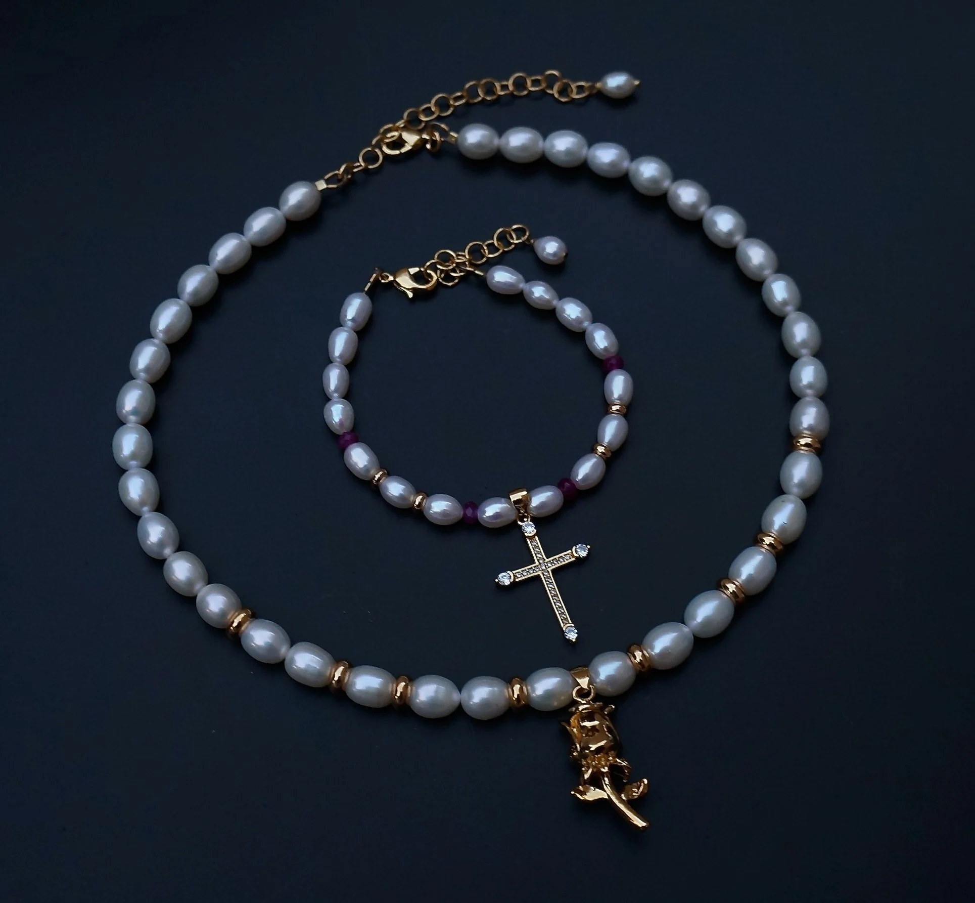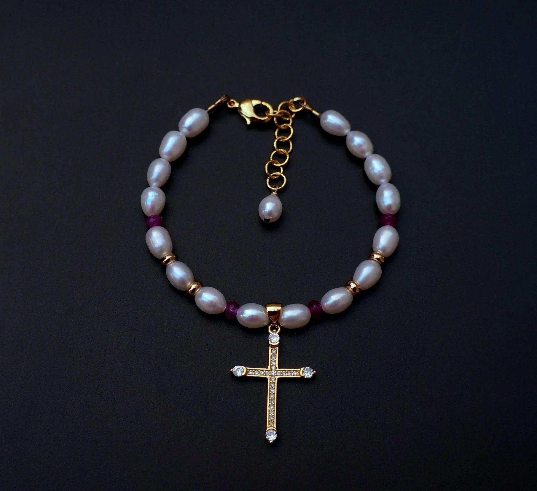 bracelet measures 6.5 inches with a 1.5 inch extender chain with genuine freshwater pearl on the end.