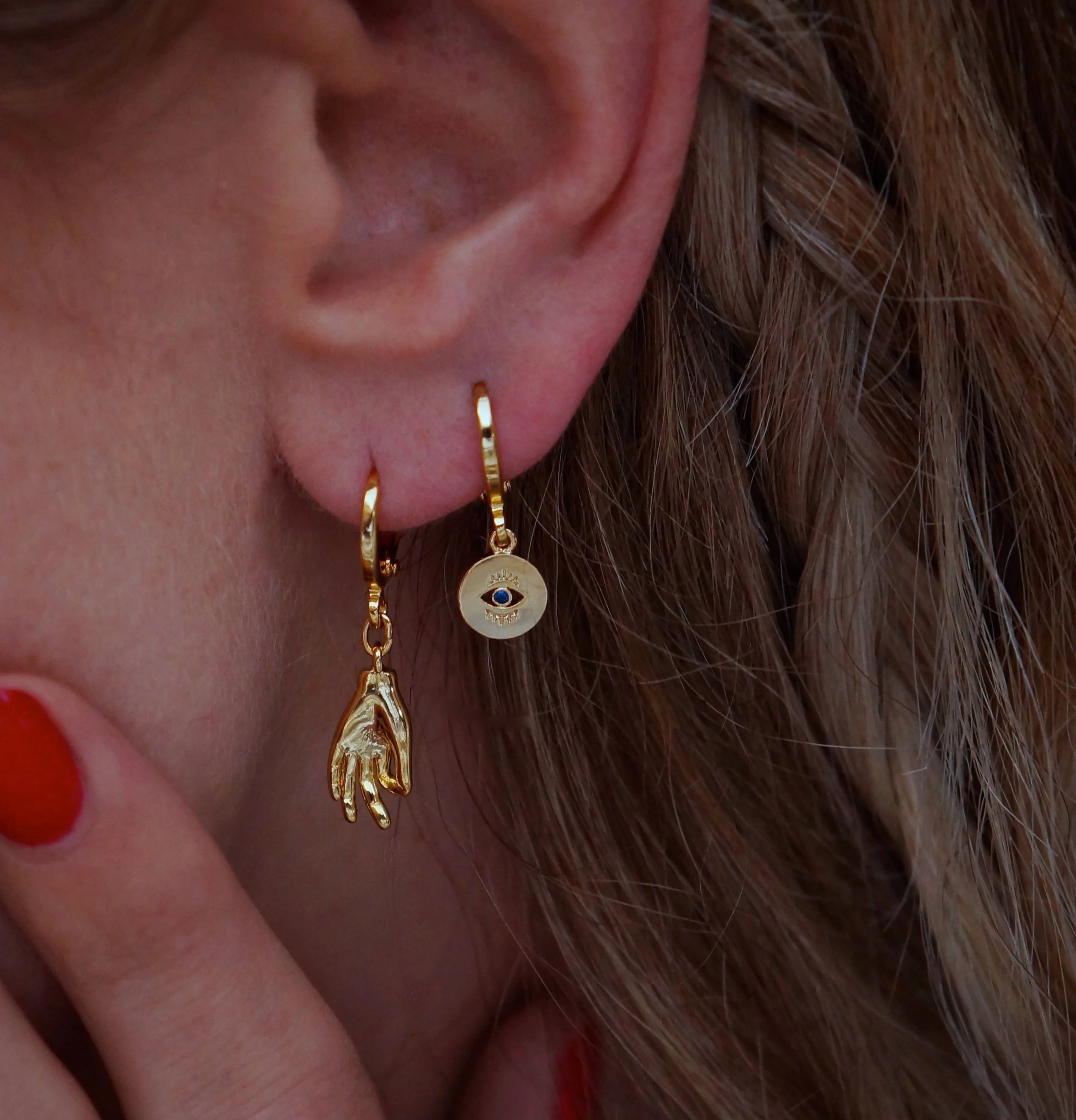 1 pair of evil eye coins (the eye is a tiny sapphire crystal)