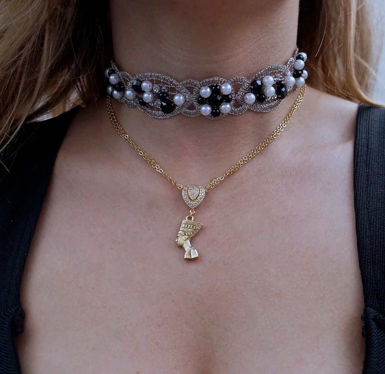 Nefertiti double chain necklace
