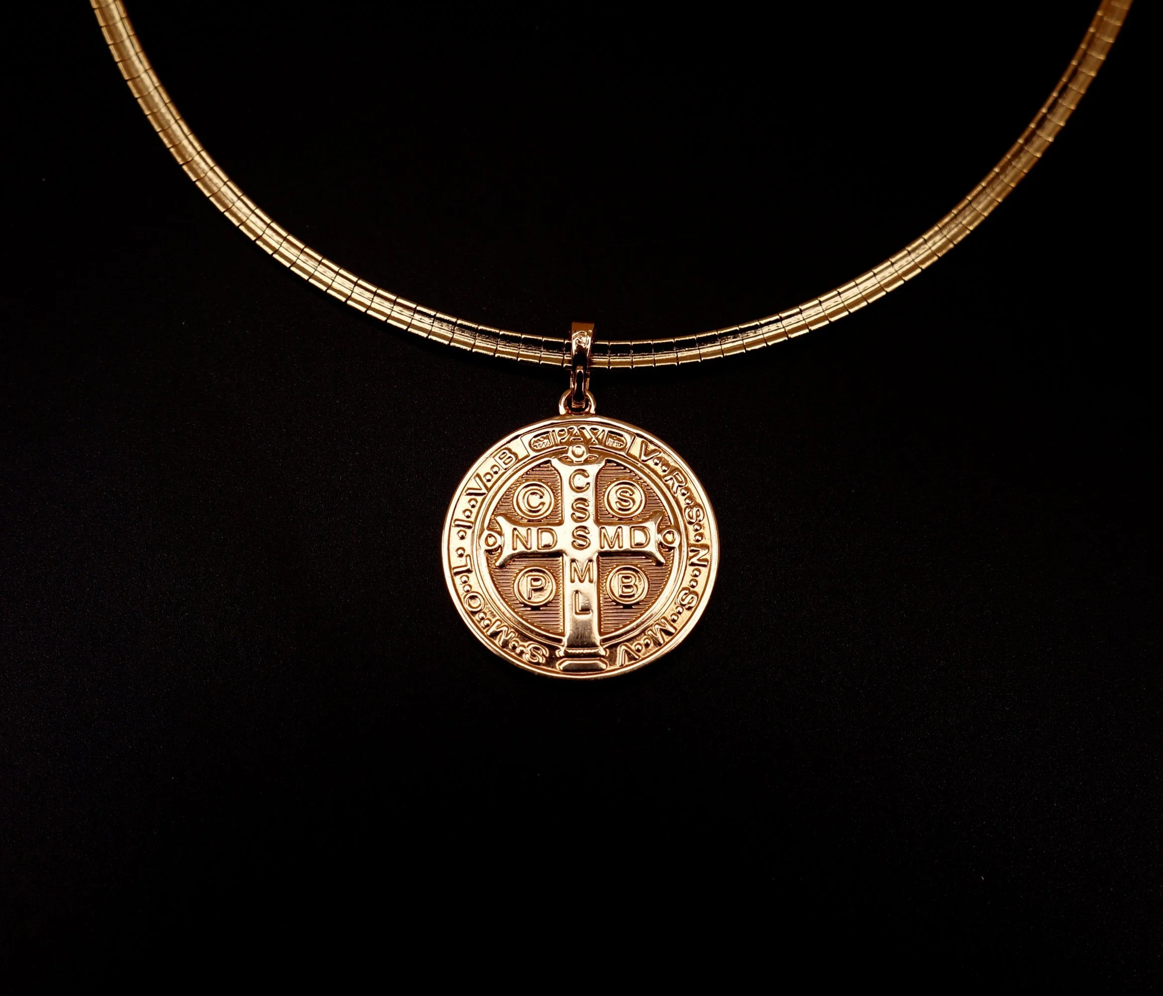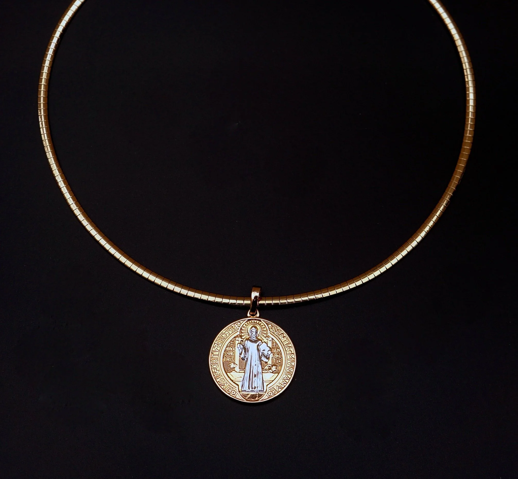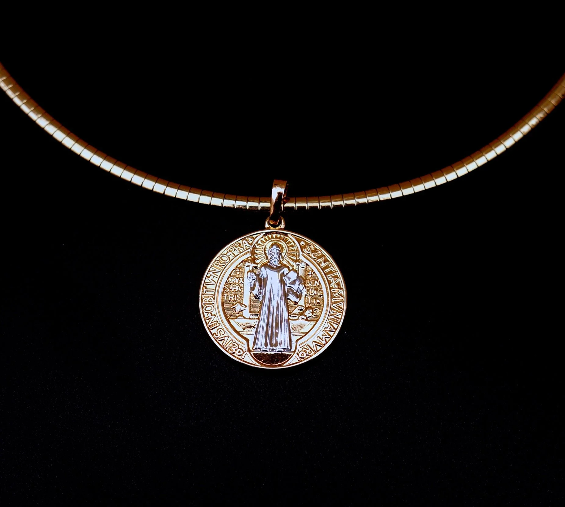Beautiful, two-tone medallion, featuring Saint Benedict.
