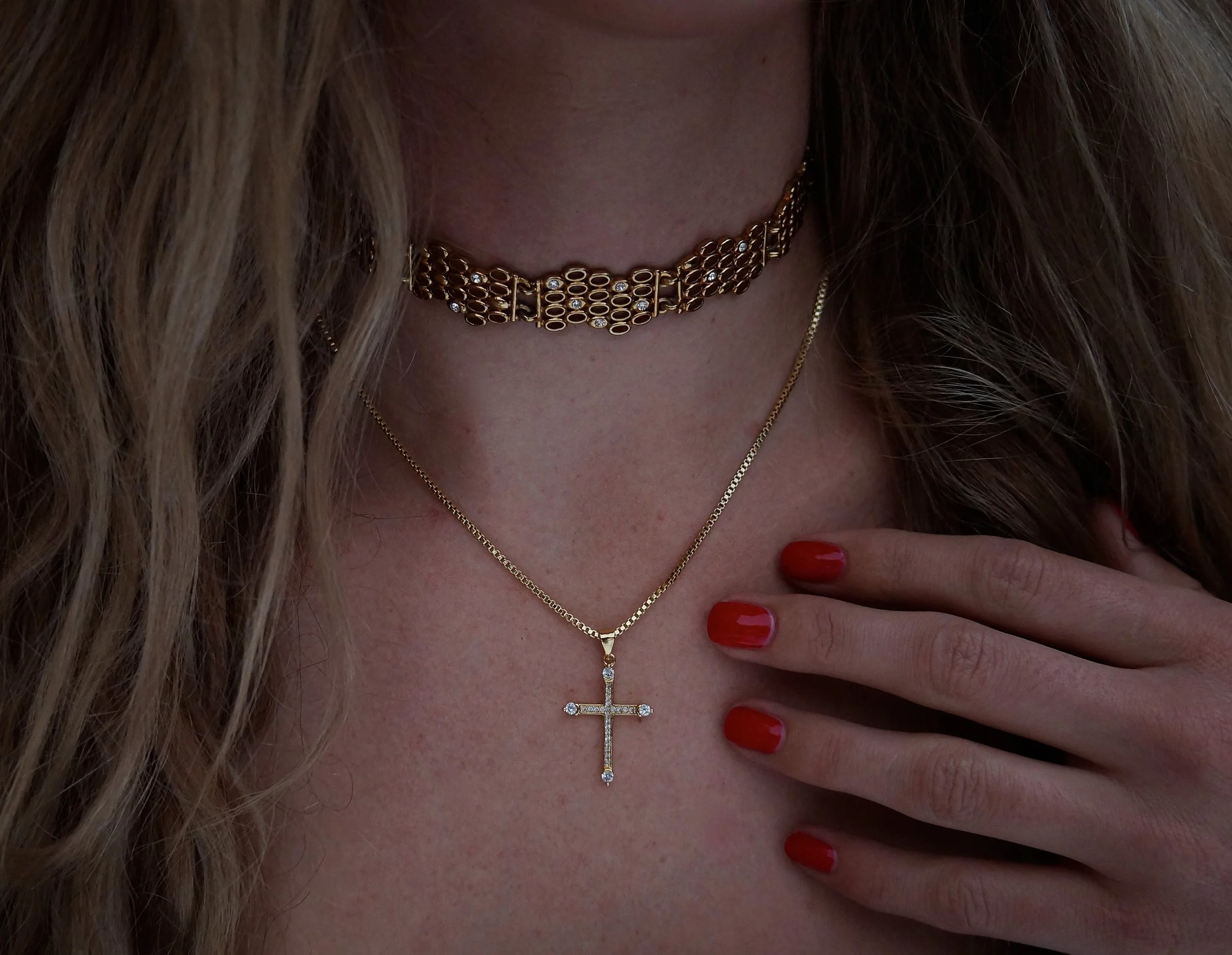 gold choker measures 7 inches with 2 long, genuine black leather ends that you tie to fit any size neck