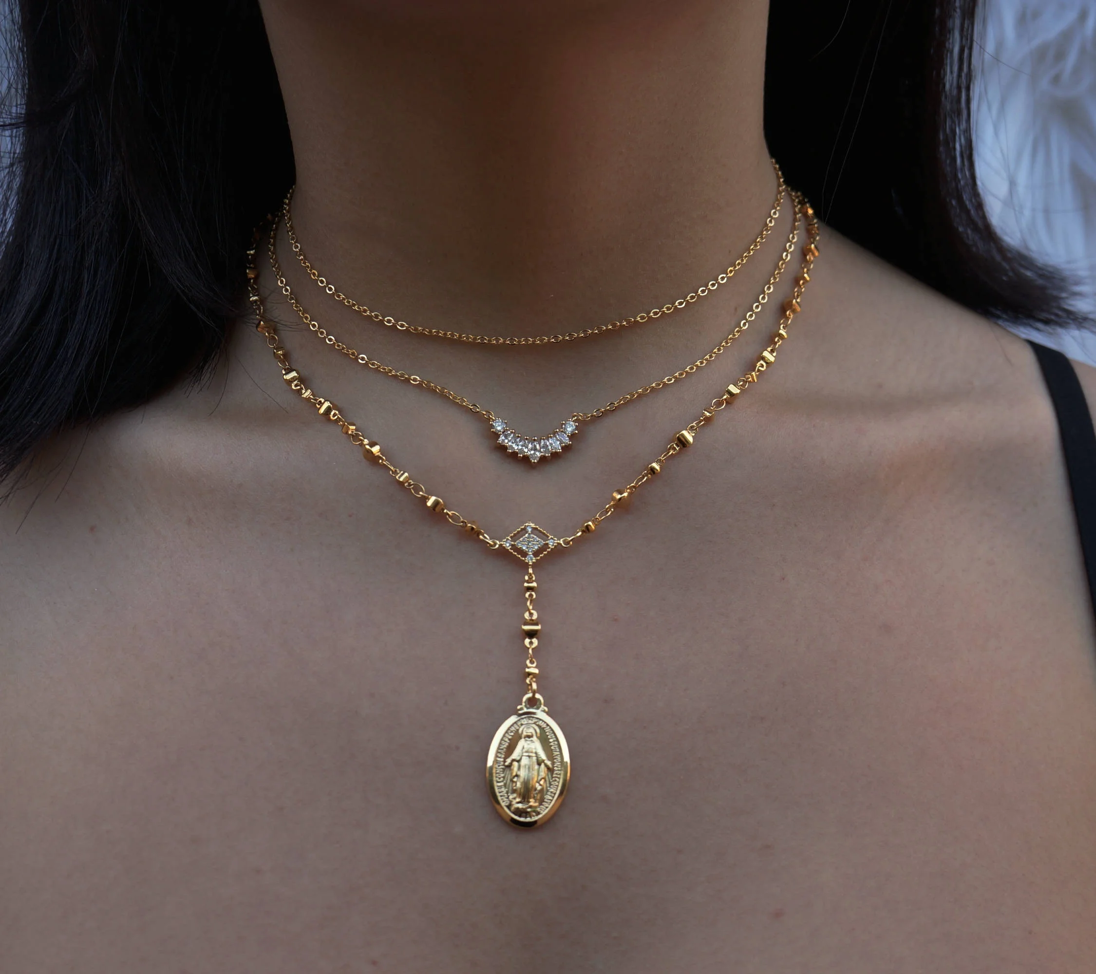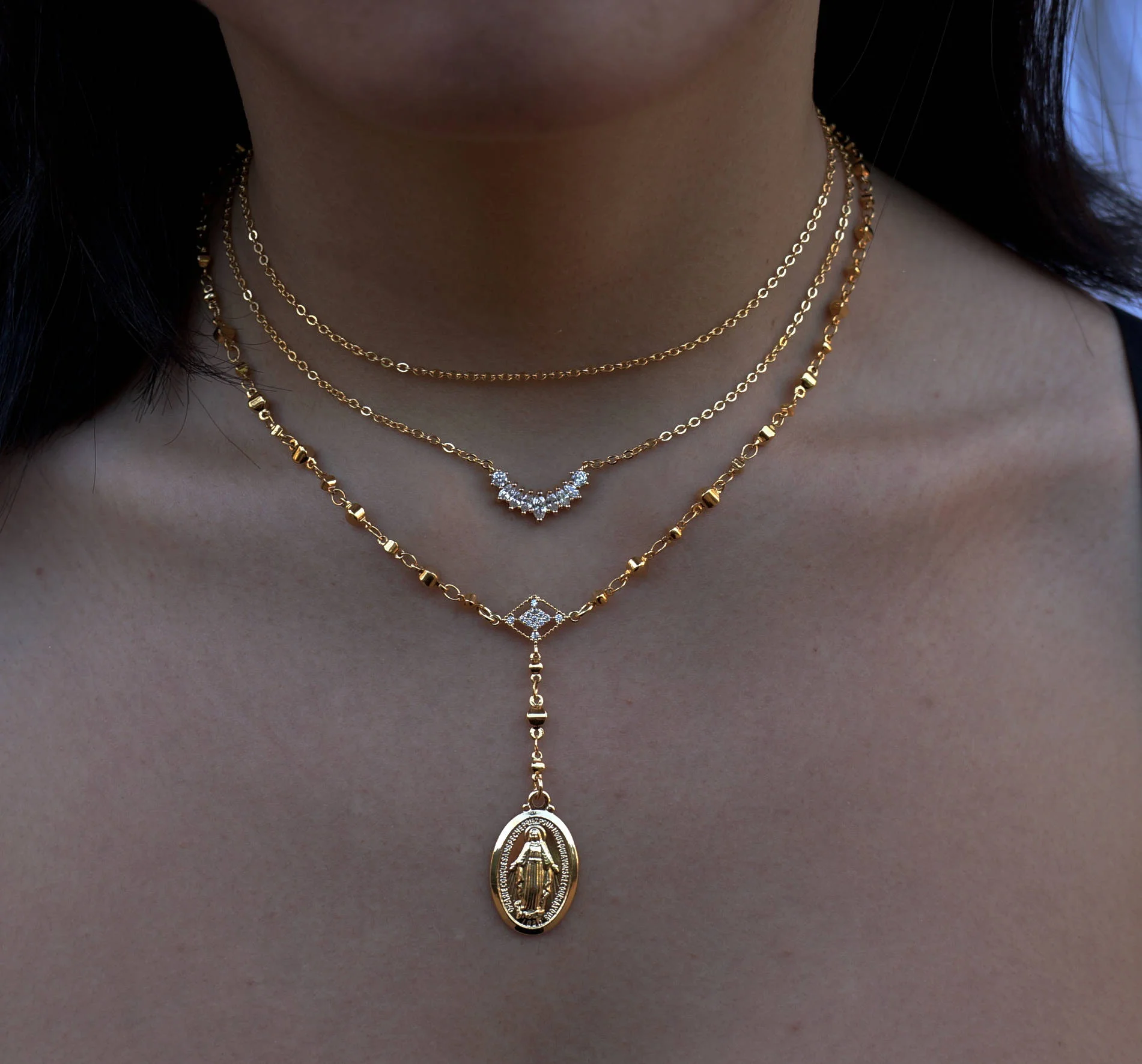necklace measurement: chain 1 = 12 inches, chain = 13.5 inches PLUS 3 inch extender chain *with your choice of a gold cross on the end or a freshwater pearl