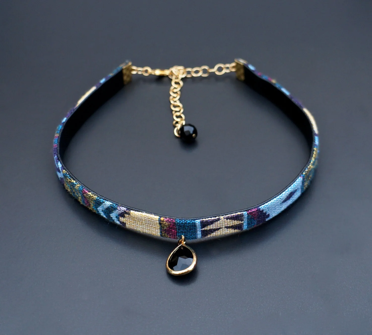 This gorgeous, double-sided, ethnic inspired choker features: