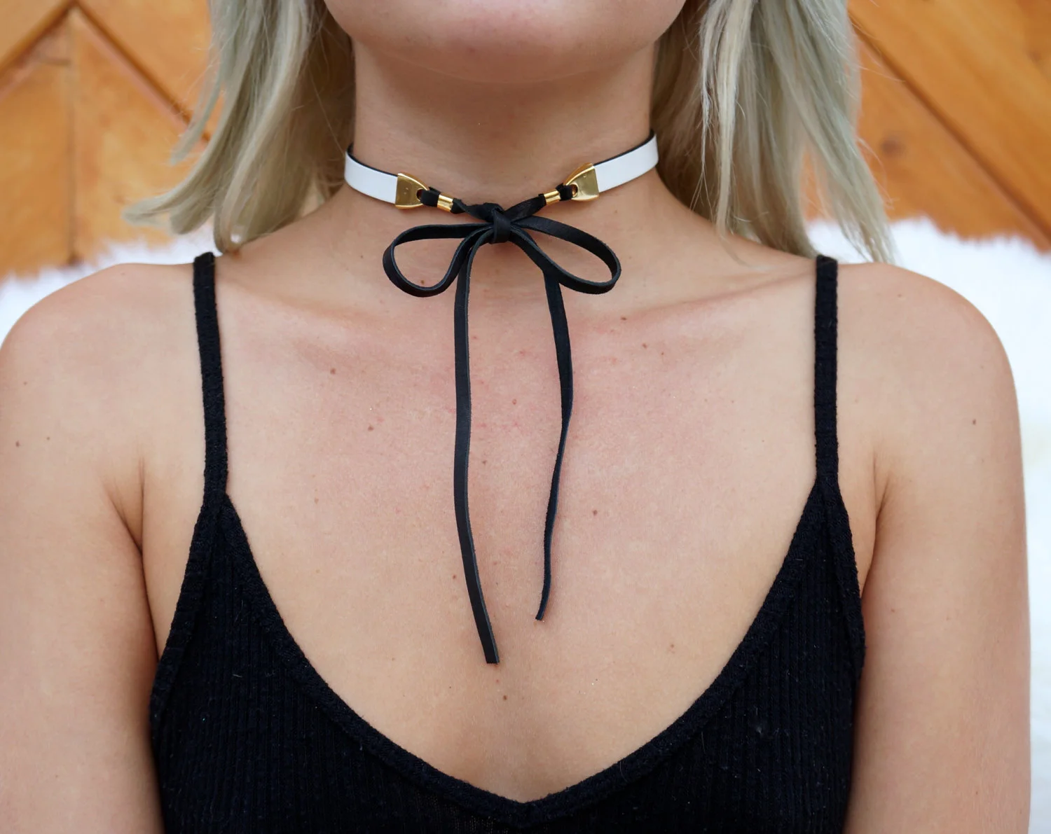 *choker measures 11 inches with soft, aqua-dyed leather ties at the