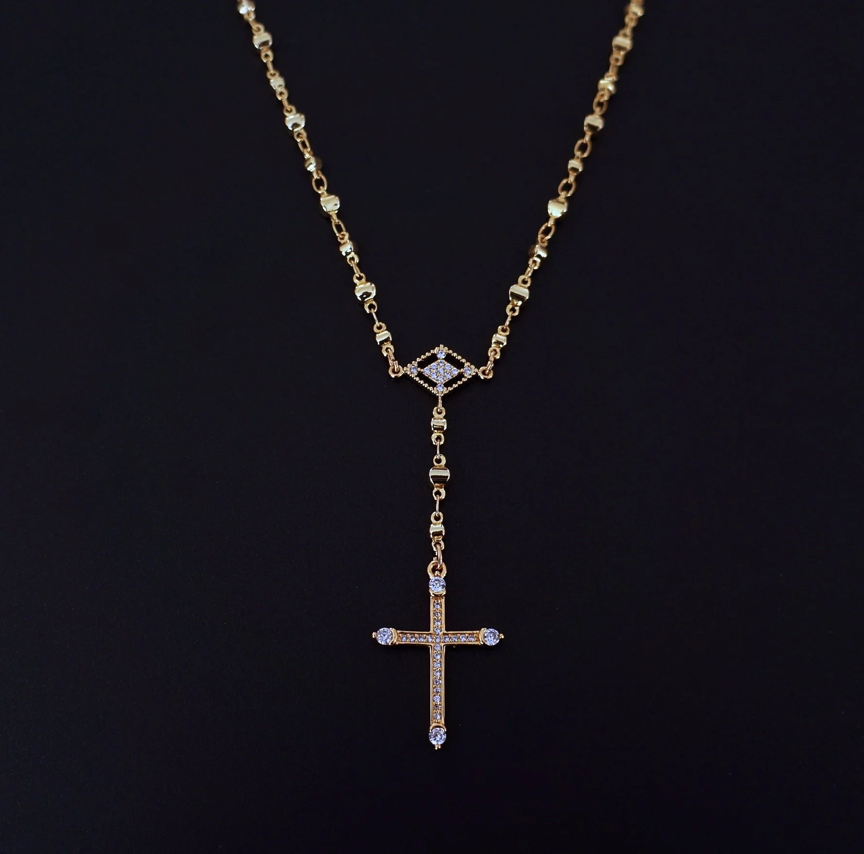 Diamond Cross Rosary Necklace